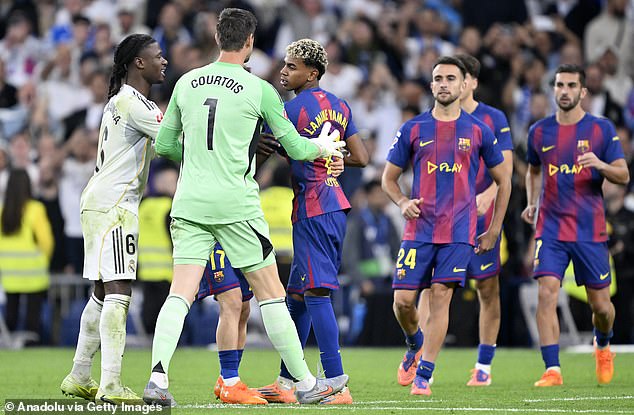 Real Madrid’s clash against Barcelona descended into chaos on Sunday night as tempers flared at full-time – and wonderkid Lamine Yamal was at the centre of things.