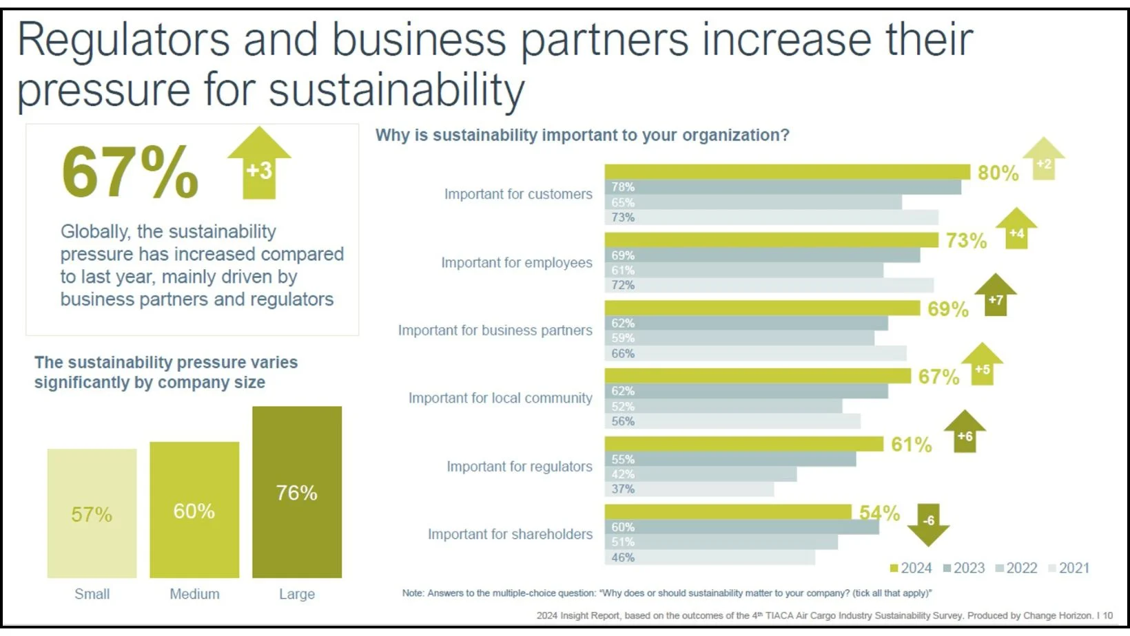 Sustainability considerations are becoming increasingly critical for air cargo and, consequentially, e-commerce logistics. The TIACA annual Sustainability survey illustrates that sustainability considerations are important for many industry stakeholders, as illustrated in the chart below.