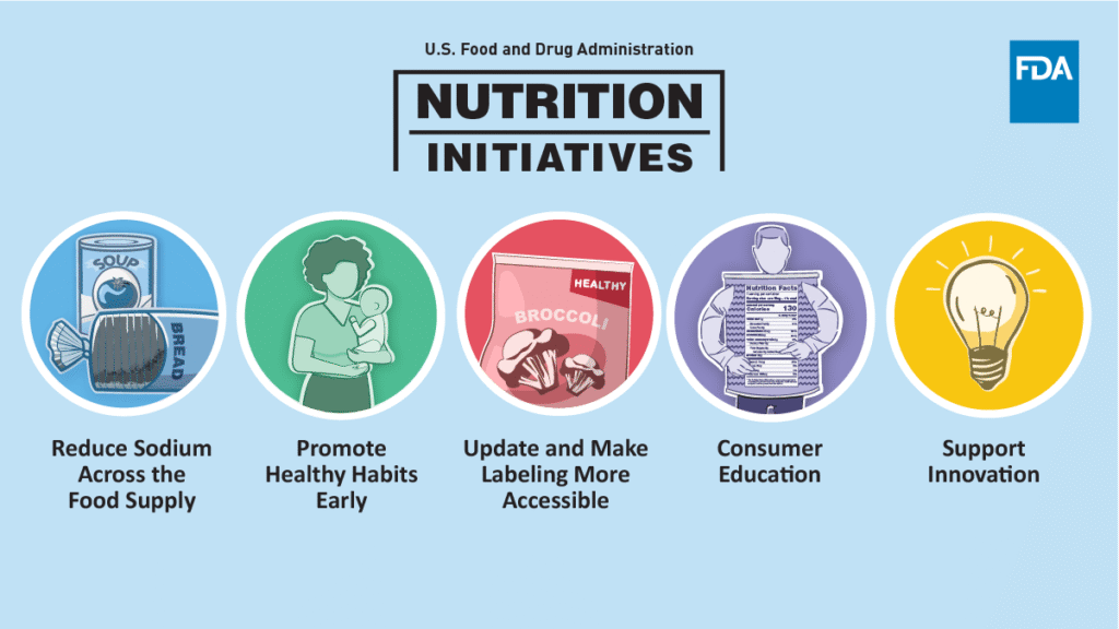 The FDA’s Nutrition initiatives encompass the following categories: