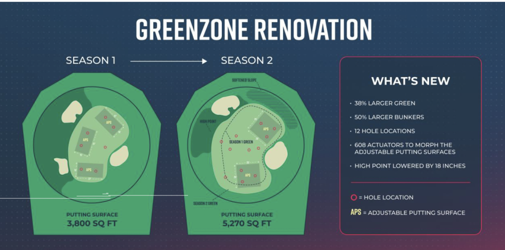 Based on data, analytics and player feedback from Season 1, enhancements include a renovation of the green, with a larger surface area, more hole locations and larger bunkers.
