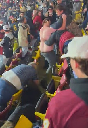 Continue readingShameful moment Washington Commanders fans brawl in the stands… before security FINALLY arrive to break it up