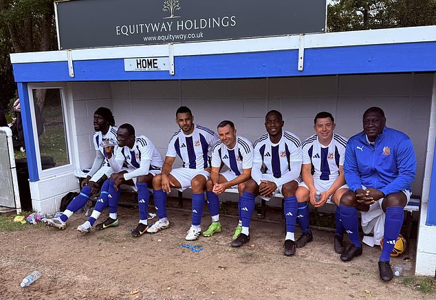 A picture of the Wythenshawe FC Vets bench showed Emile Heskey (far right), Maynor Figueroa (second from right), Papiss Cisse (second from left) and Oumar Niasse (far left)