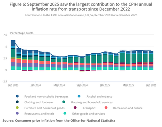 The below chart is useful to scan across the past couple of years and see how different areas have affected inflation in the UK.
