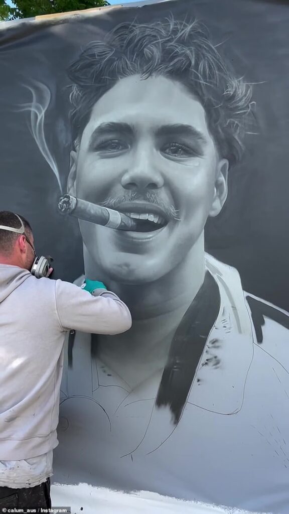 ‘Been wanting to paint Reece for ages, finally had a chance with some wet weather around,’ he posted to his followers.