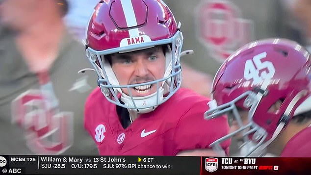 Alabama kicker Conor Talty could not hide his frustration at one of his own teammates after missing a kick in their surprising loss to Oklahoma on Saturday.