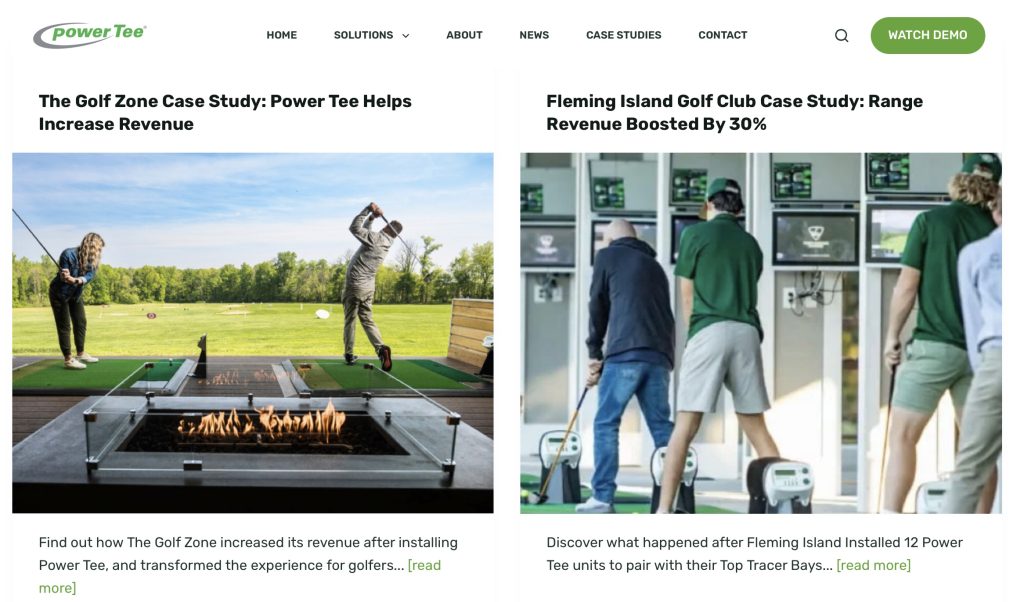 Dedicated Resource Hubs: New sections of the website focusing on how Power Tee offers different benefits to Driving Ranges, Golf Facilities, and Golfers