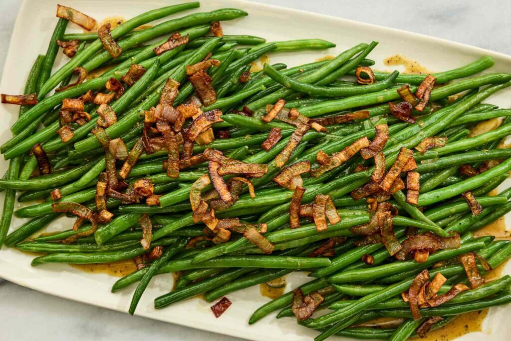 Maple-Mustard Green Beans with Crispy Shallots