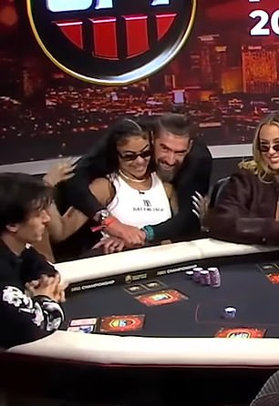 After Love made an off-camera poker move, Phelps – who was already out of the competition – returned to the table to wrap his arms around the influencer.