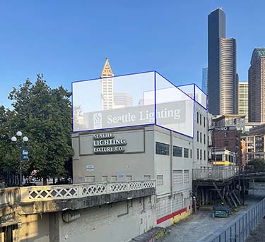 Looking northwest over the tracks, the possible addition is outlined. What most call the Seattle Lighting building, at 222 Second Ave. Ext. S., is a two-part structure on its own little triangle in Pioneer Square. The business and property have long been owned by the Funsinn and Schomer families and their descendants. […]