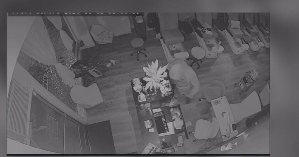 Ketron said the focus of the crime seemed to be around his block on Bonanza Street. One of the hardest-hit locations was Flamingo Hair and Nail Salon, which is his immediate neighbor. The salon was closed for the holiday but shared surveillance video showing the break-in.