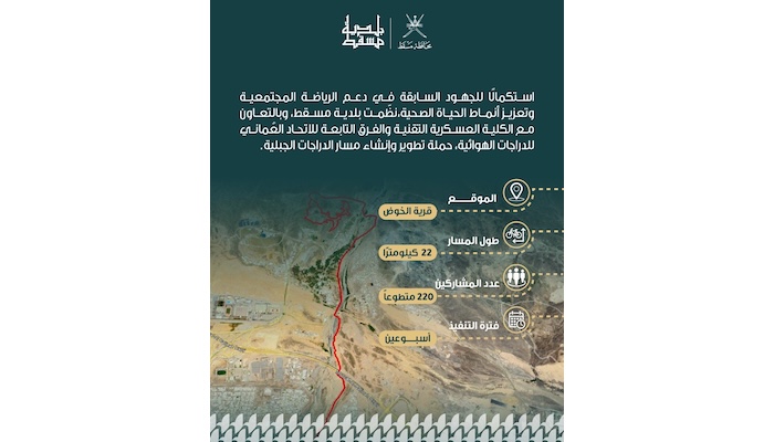 Muscat: Muscat Municipality, in collaboration with the Military Technical College and teams from the Omani Cycling Federation, has unveiled a new mountain biking trail in the village of Al-Khoudh. The initiative is part of ongoing efforts to support community sports and encourage healthier lifestyles across the region. Spanning 22 kilometers, the trail was developed over […]