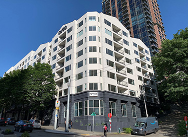 Looking south across Pike, Terry Avenue is at right. Nov. 10 was the declared opening day for a hotel-to-apartment conversion on Capitol Hill. It barely missed that target, but the Avia Apartments on Pike is now leasing its 183 units. Its website is up and running. . . . Source link